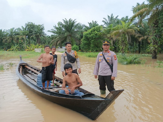 Kapolsek menyampaikan, volume air mengalami kenaikan sekitar 30 cm - 150 cm, hingga beberapa rumah dan kebun sawit warga jadi korban banjir.