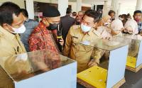 ROHIL - Bupati Rokan Hilir (Rohil) terpilih Afrizal Sintong turut hadir menyaksikan penyerahan bantuan alat penggiling kompos untuk masyarakat tani di KM 12 Balam, Dusun Sepakat Desa Bangko Jaya, Kecamatan Bangko Pusako.